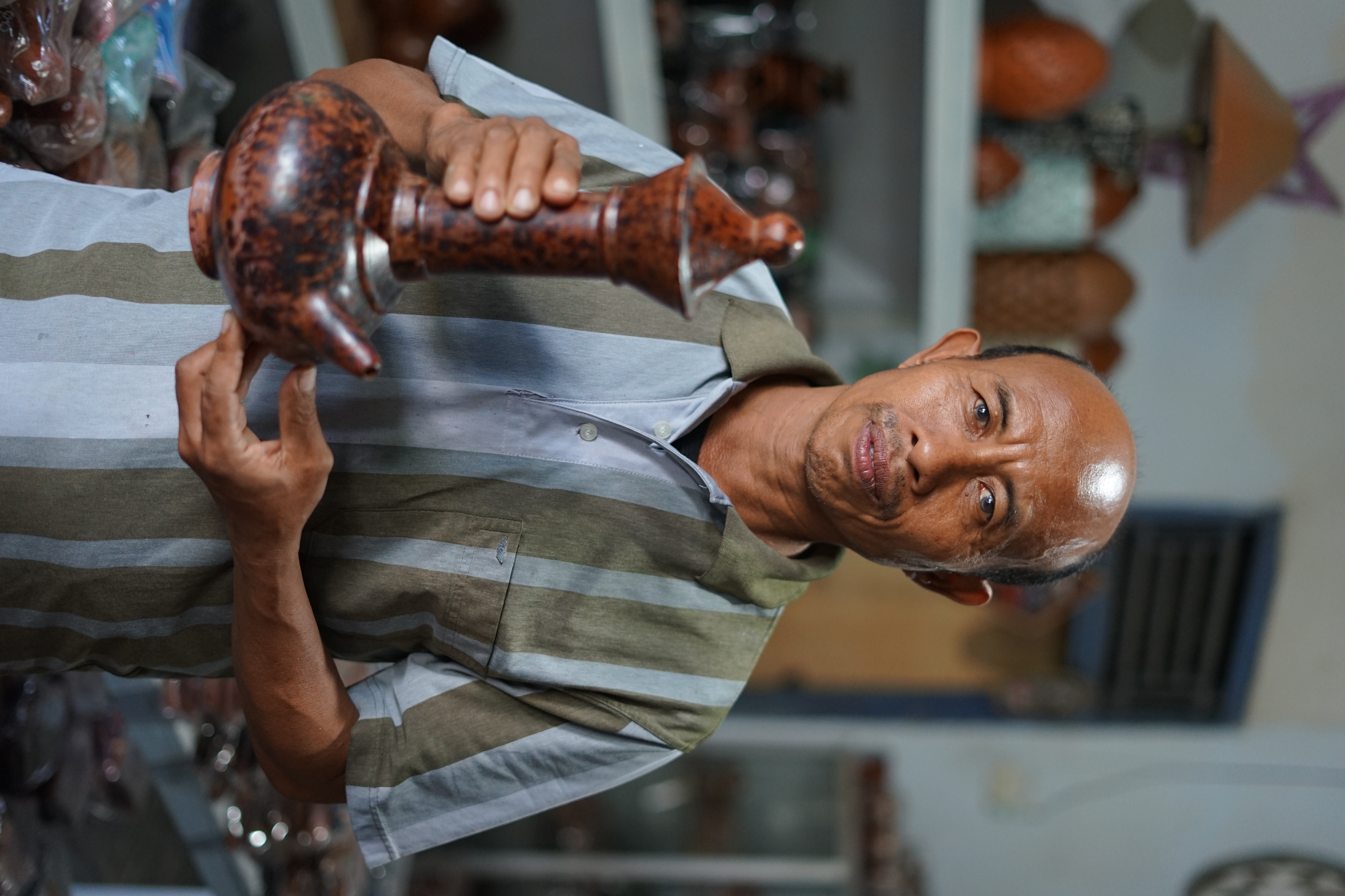 Saat memasuki galeri Yulia Pottery milik Amran di Dusun Tenandun, Sobat Pesona akan melihat ciri khas berupa kerajinan gerabah yang sangat besar bernama Cerek Maling. Ini adalah produk unggulan Desa Penujak ini belum bisa ditiru oleh desa lainnya. Cerek Maling merupakan tempat air minum yang unik dengan lubang tempat mengisi airnya yang justru terletak di dasar cerek dan tanpa penutup di bawahnya. Ajaibnya, meski demikian, air dari cerek tidak akan tumpah.