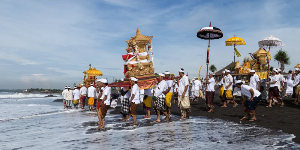 Before the Nyepi Day, you can witness the Melasti ceremony. Balinese Hindu communities perform this ceremony on the beach to purify themselves and cleanse the sacred objects belonging to the temple.