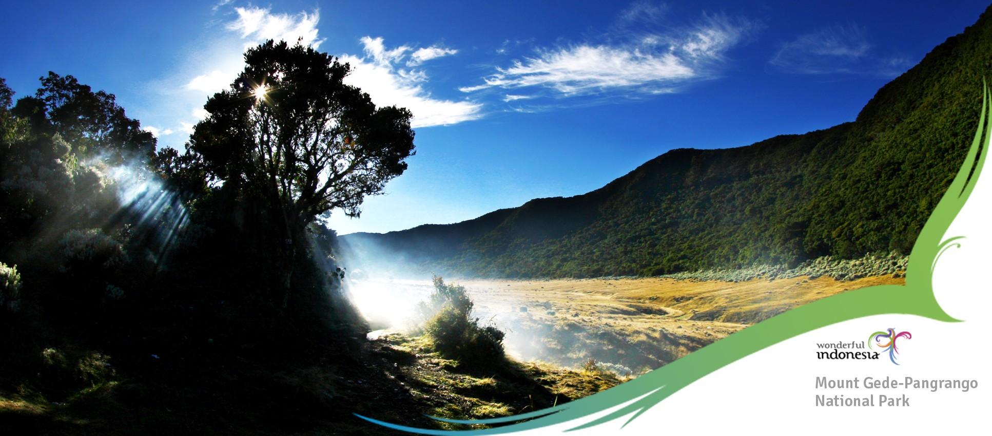首都ジャカルタから近く簡単なアクセスのため、素晴らしいパノラマのGede山とPangrango国立公園は国内外の登山家に人気の場所です。この国立公園にはGede山とPangrango山の二つの頂上を同時に楽しむことが出来ます。Gede山のサミットとクレーターからの景色は日の出も日没でも素晴らしく、アルン・アルン・スルヤクンチャナの所では魅惑的なEdelweiss花畑が熱帯地方で育っている様子も観察できます。