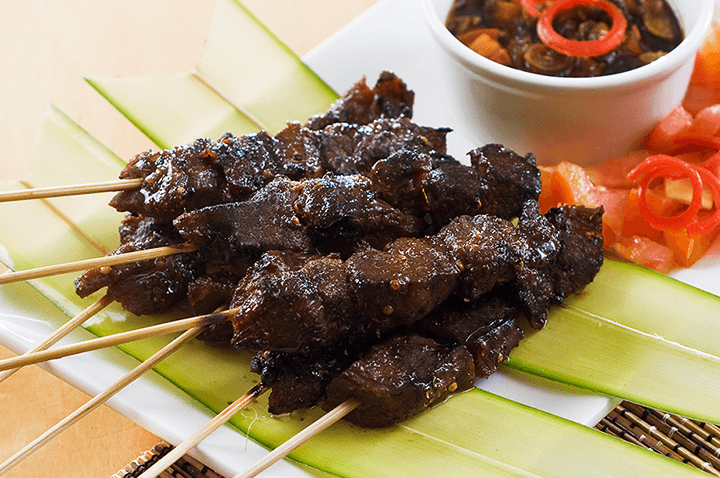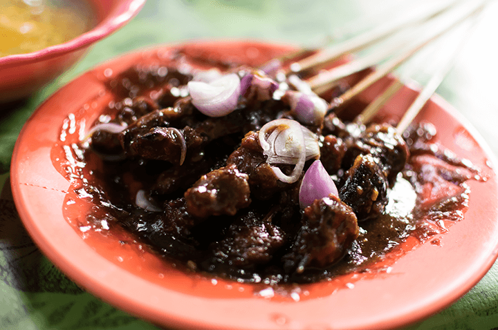 西ジャワのプワカルタという都市で作られ、ラム肉や牛肉を使用するのがマランギサテーだ。青唐辛子のペーストとサトウキビから作られたビネガーに漬けられ、スライスシャロットとトマトと共に召し上がれ。