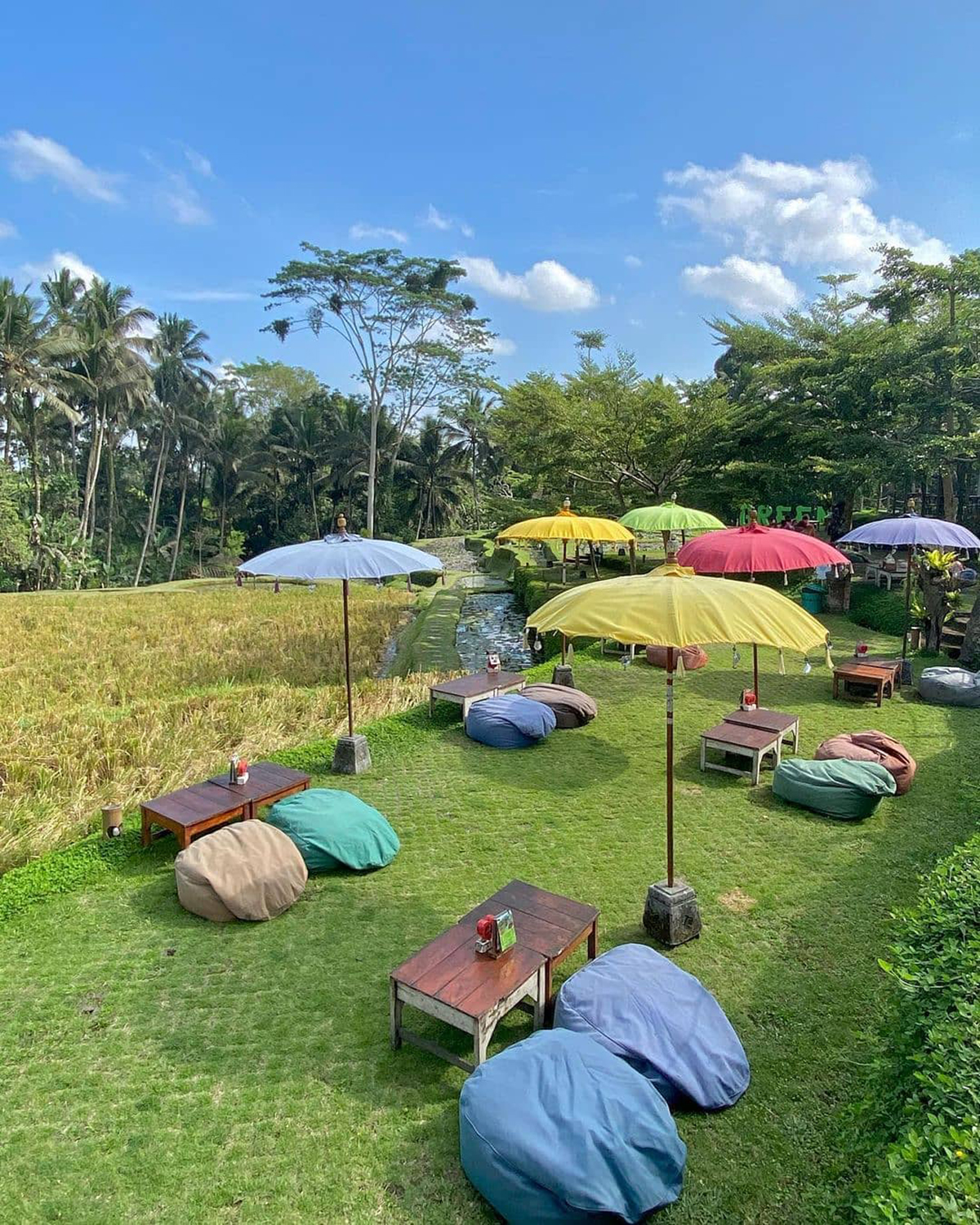 Kalau ke Bali, pemandangan alam terbuka yang bikin pikiran segar dan semangat kerja langsung meningkat adalah hal wajib yang harus ditemukan. Pas banget nih Sobat Pesona, karena di Ubud, ada Green Kubu Cafe, sebuah cafe unik dengan lanskap alami langsung ke sawah. Di sini juga tersedia aneka pilihan menu lokal khas Pulau Dewata, lho!