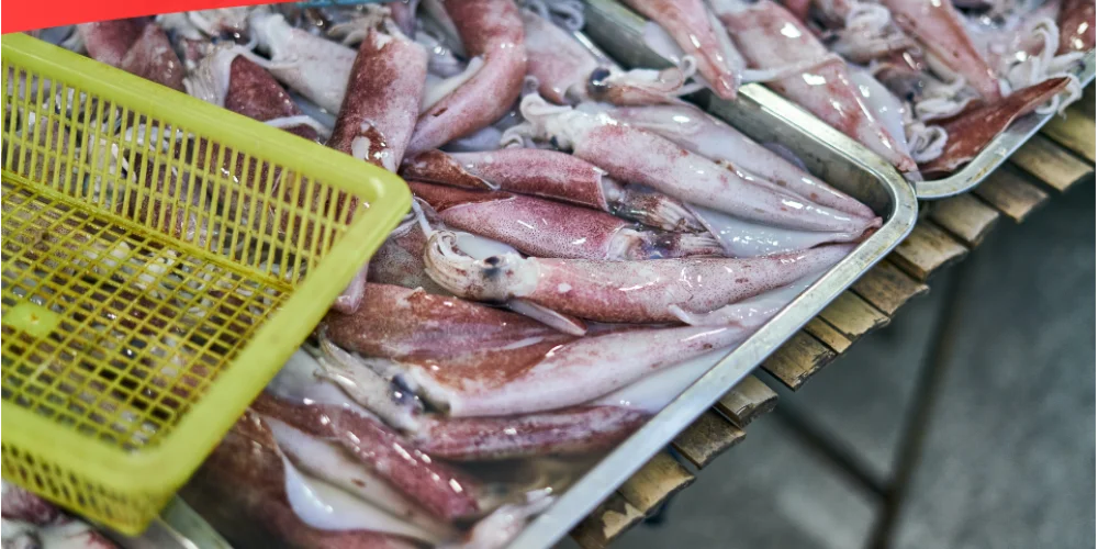 Hasil laut lain yang ada di PIM Muara Baru adalah cumi-cumi. Ukurannya dari cumi kecil hingga cumi yang sangat besar.