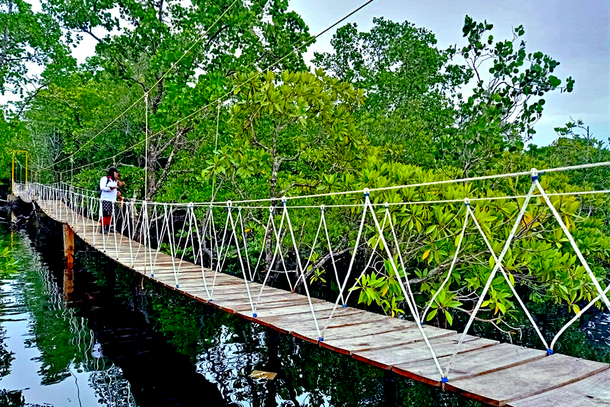 Saat ke hutan bakau ini, jangan lupa berfoto di jembatan gantung cantik di tengah hutan, ya! Bahkan lantaran begitu terpeliharanya alam di Desa Bahoi, Sobat Pesona juga bisa memancing ikan dari atas jembatan.