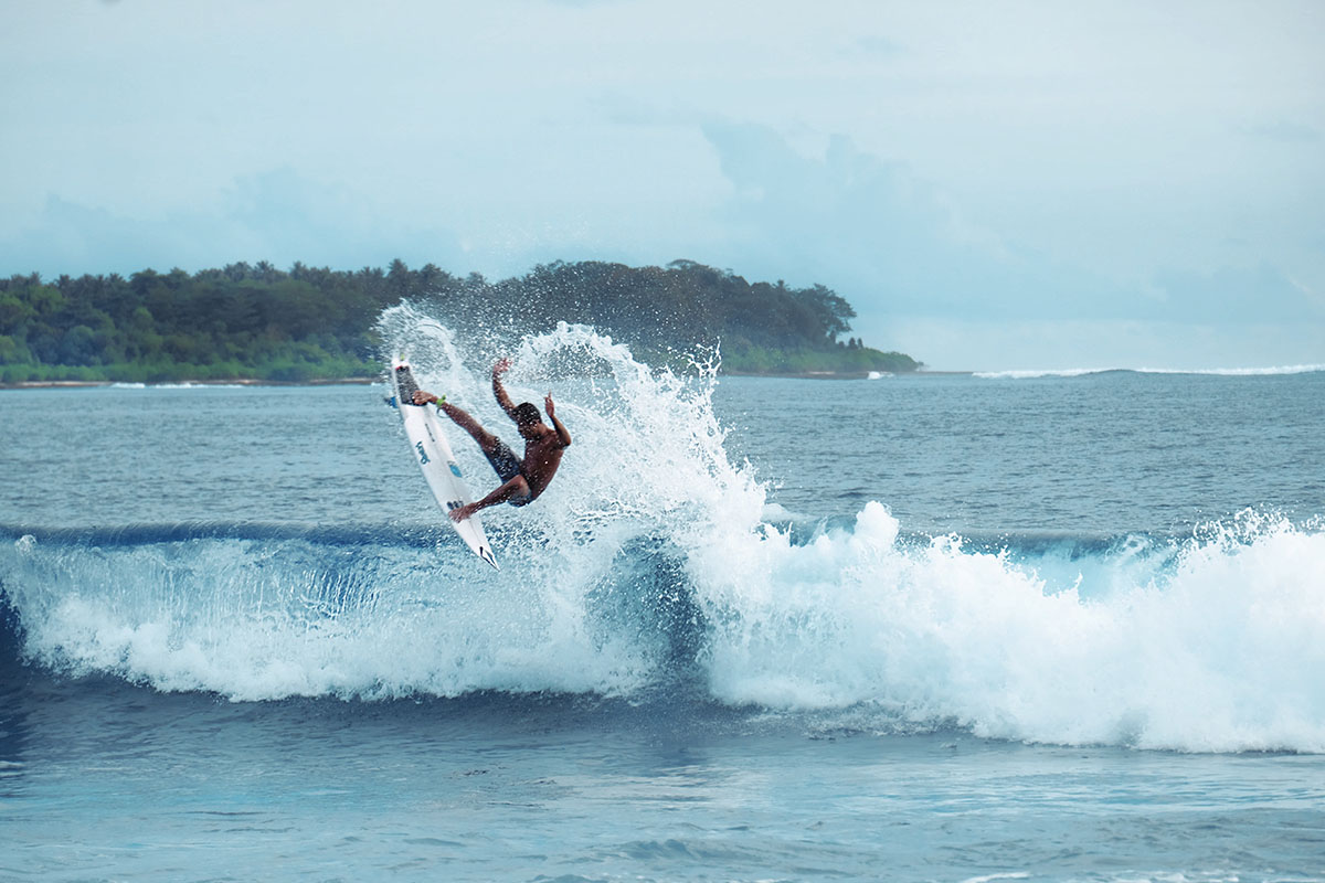 The island holds several point breaks which is well known by surfers from around the globe. The waves include one of the longest left-hand barrels in the world set on the stunning backdrop of a wild tropical forest on the island called One Palm Point, then there’s a right-hand reef break for advanced surfers called Apocalypse, for advanced surfers there is a hollow left-hand wave which is extremely shallow and also breaks over a treacherous reef called Napalms, and also Ombah Tujuh meaning ‘Seven Waves’ that produces some of the biggest ride able waves in Indonesia.