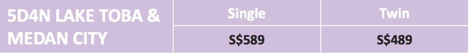 Lake Toba-pakket – Vlucht vanuit Singapore (oktober-november 2017)