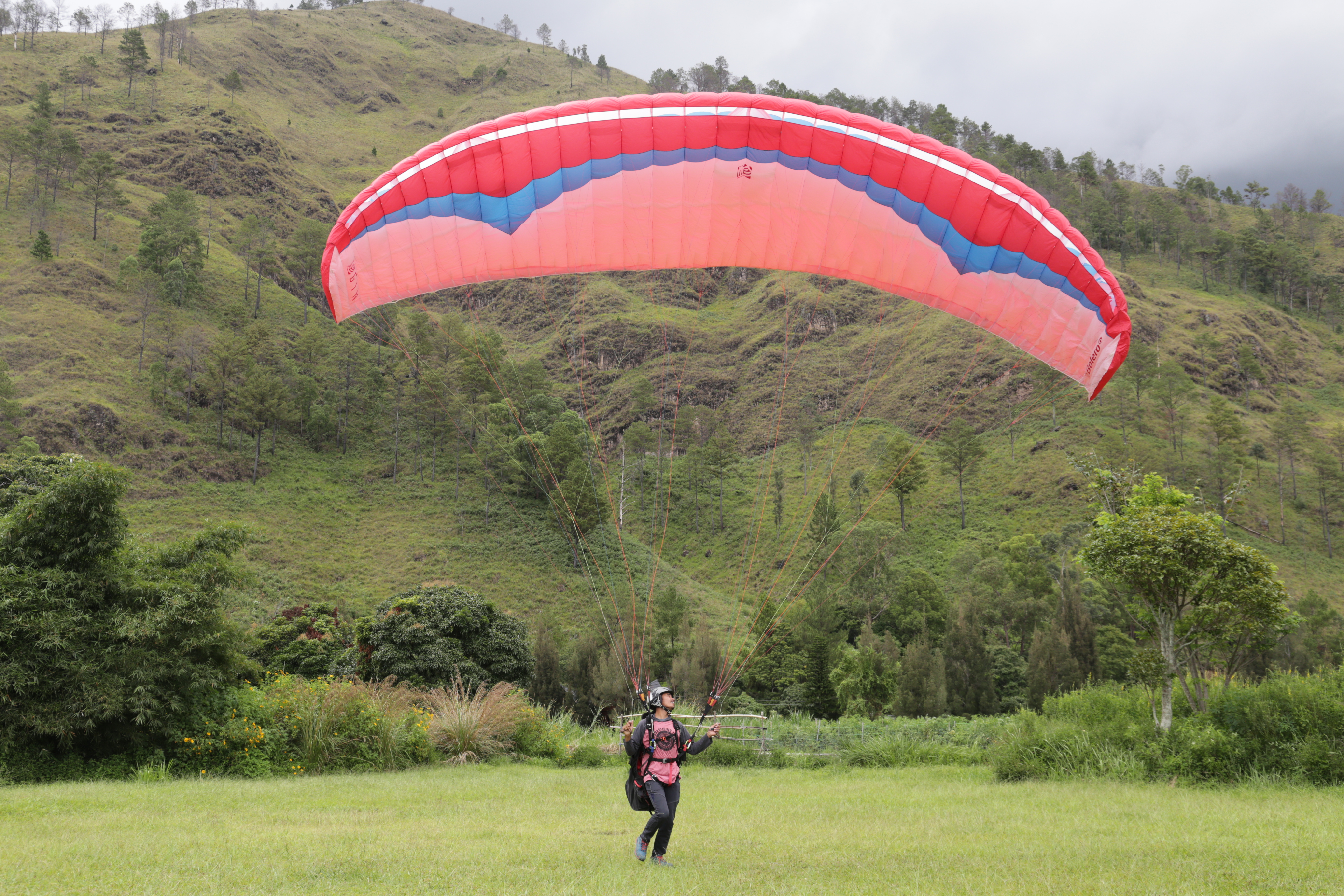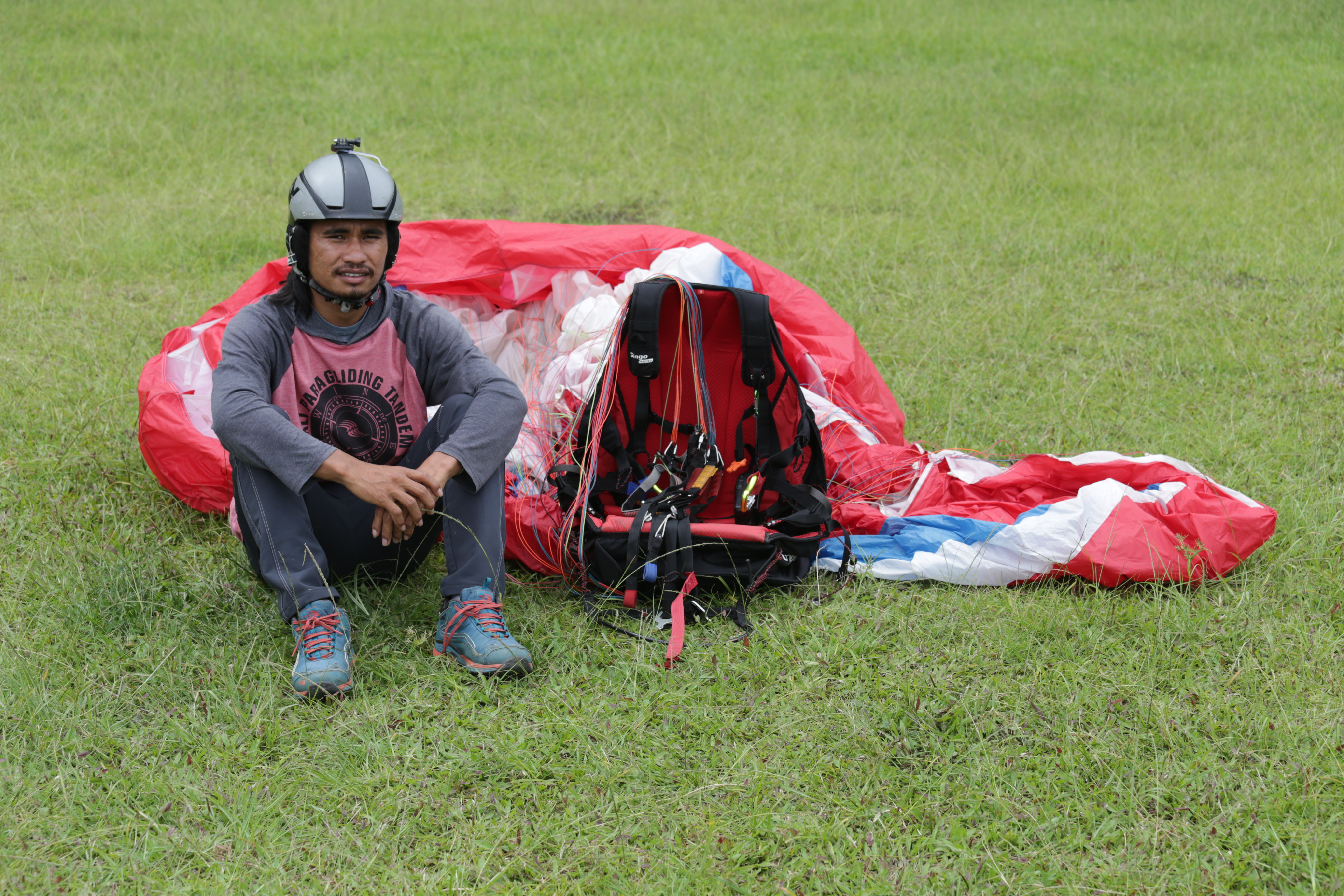 Andreas Prasetya Sinaga is one of the few paragliding pilots in Karo Regency, frequently flying from Gajah Bobok in Pangambatan Village. He soars multiple times a week, depending on the weather and wind direction, which are critical for paragliding.