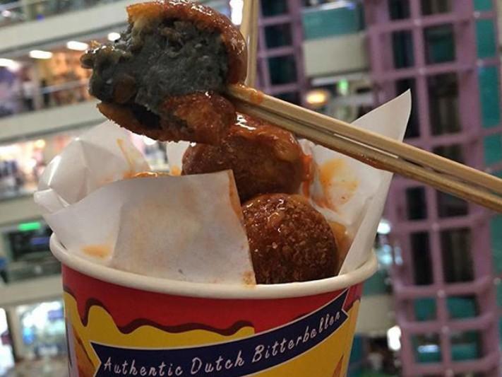 الوجبات الهولندية في المنازل! الوجبات الخفيفة الهولندية الشهية التي تسمى بيتربالن. يمكنك تذوق الدجاج المقلية من بيتربالن، أوهالوين بيتربالن مع جبنة الموزاريلا.
