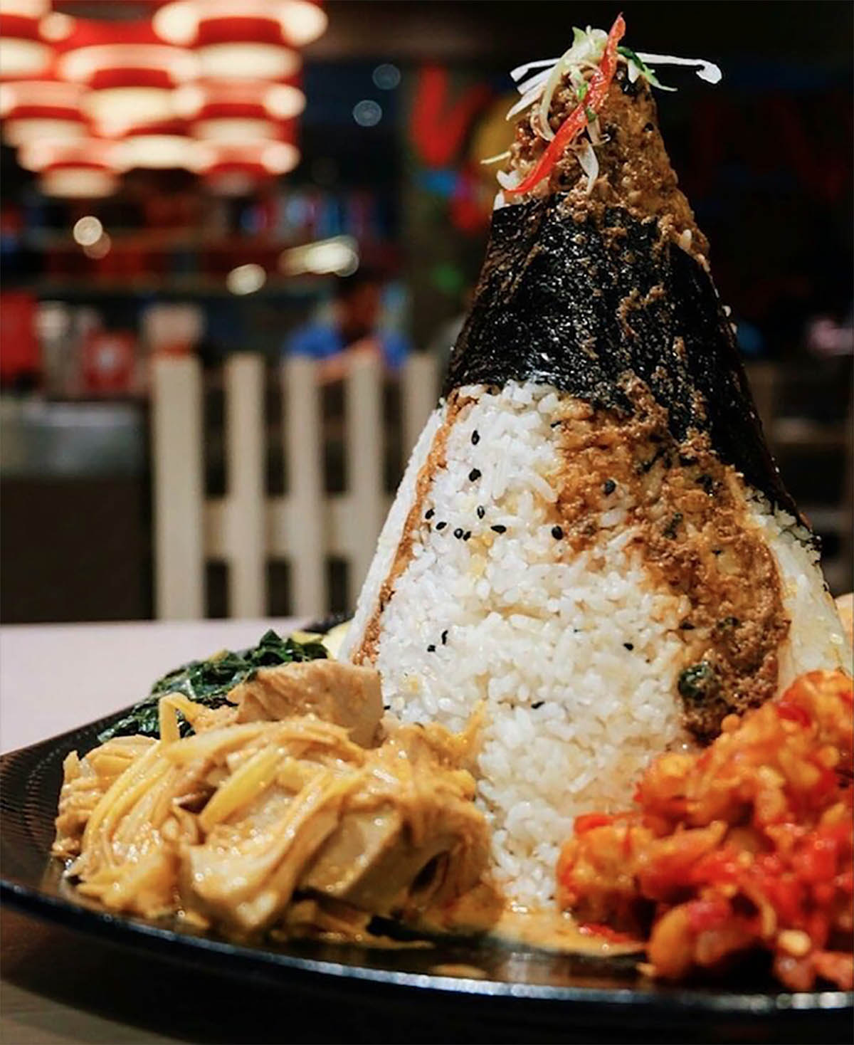 How does it feel when your rendang menu and favorite ayam pop came to your table with conveyor belt like at the Sushi Restaurant? Well, only in Suntiang restaurant you could experience Padang cuisine served in Japanese style. One of their signature dishes called rendang roll. Just like sushi roll the sushi rice will be filled with nori, kyuri, salad and rendang in it. On top of the roll, there will be rendang sauce, sesame seed and spicy mayo. If you want to check this modern combination you could visit their restaurant at Pondok Indah Mall, South Jakarta.
