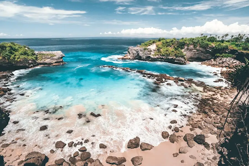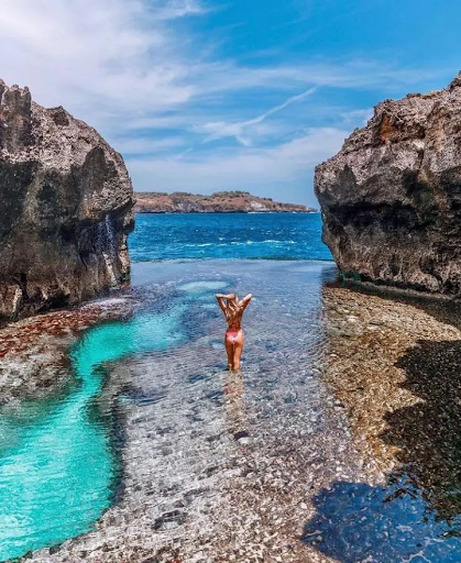 天使浴池 (Angel’s Billabong) 是巴里島佩尼達島 (Penida) 上一個美麗的天然潮汐池,以其清澈的海水、壯觀的懸崖和岩層聞名。它的得名也來自於天堂般的風景,池水是綠松石色的,周圍環繞著岩石峭壁。退潮時池內可以游泳;漲潮時,海水湧入游泳池,淹沒岩石。