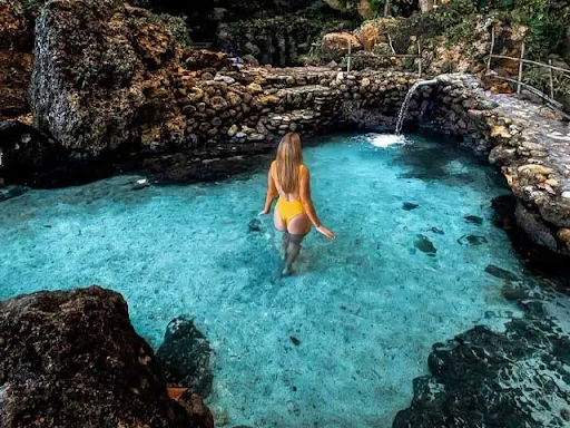 專供男士的泉池顏色是深藍色,其上有高達3-5米的懸崖峭壁;專供女士的泉池較淺,只有50公分左右,池水也是淺藍色的,相對較為安全。