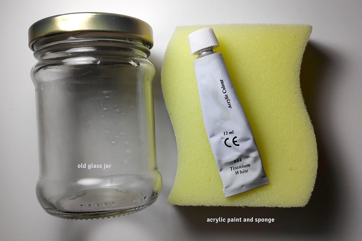 Sobat Pesona perlu menyiapkan toples kaca bekas, cat akrilik, spons, dan kuas.