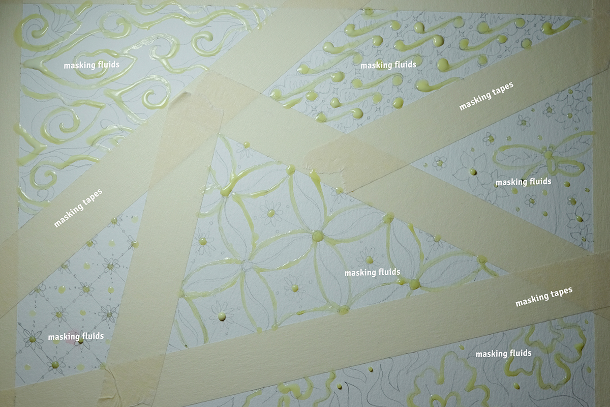 Jika sudah selesai, tunggu hingga kering. Inilah saatnya menghilangkan masking fluids dan mencopot selotip yang masih menempel pada kertas.