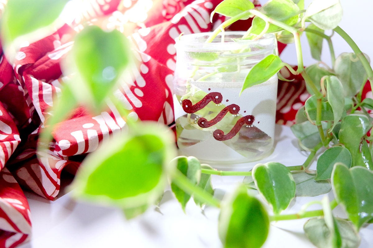 Langkah pertama, bersihkan dan keringkan dulu toples, kemudian warnai dengan warna dasar putih menggunakan spons. Setelah itu, Sobat Pesona bisa mulai menggambar motif gentongan memakai spidol permanen berwarna hitam dan warnai pola tadi menggunakan cat akrilik warna-warni.