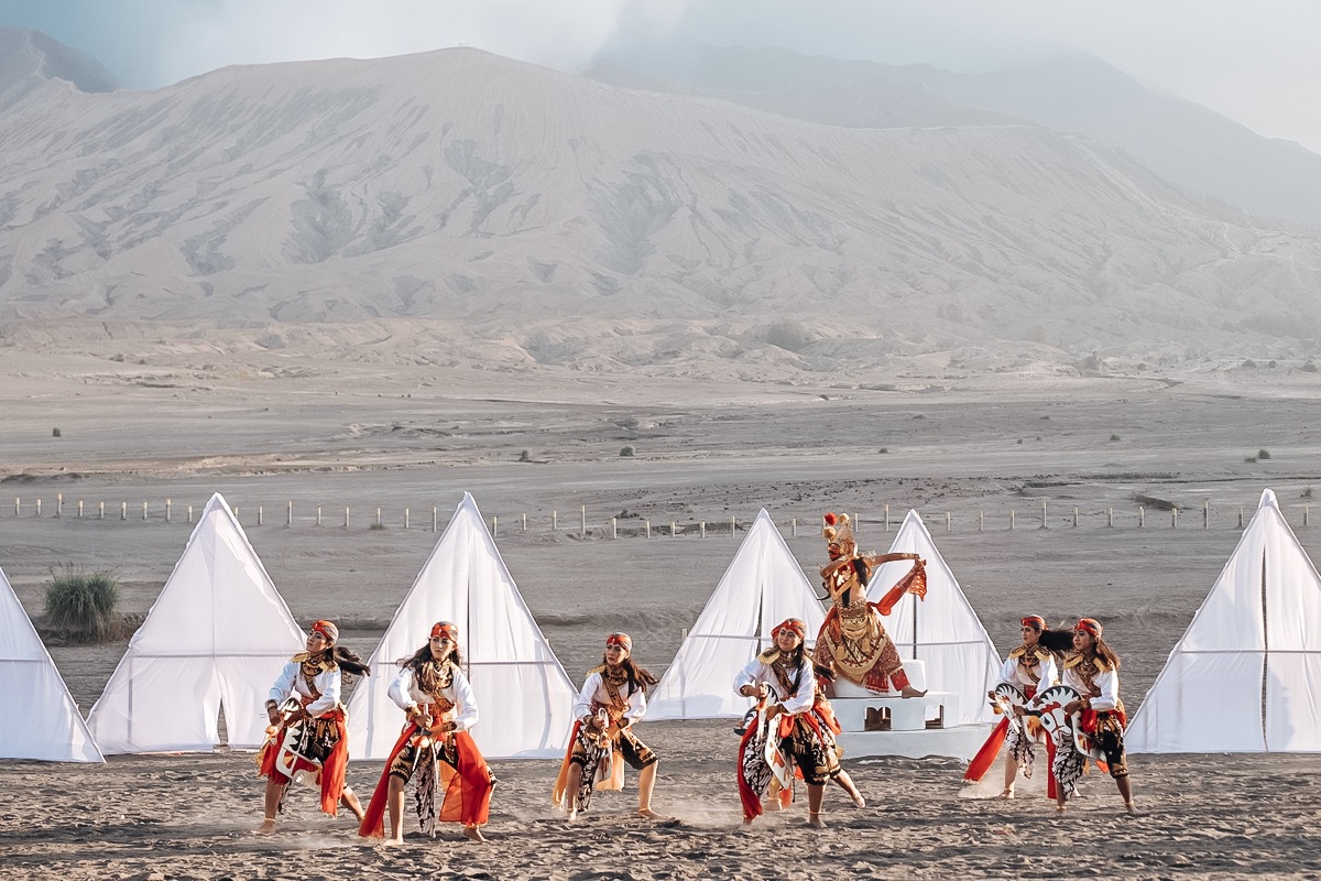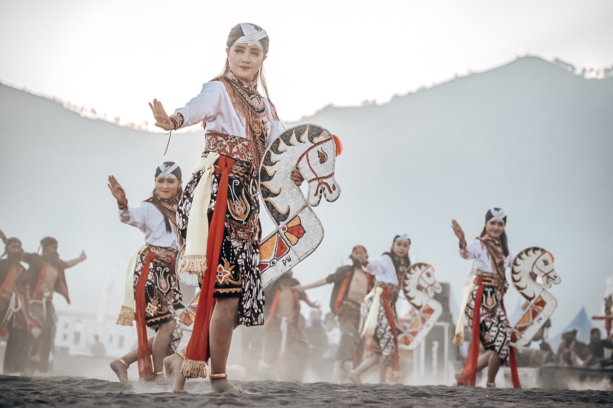Standing majestically in the huge caldera of the once ancient Mount Tengger, is Mount Bromo, The icon of East Java, a truly magnificent wonder. Its spectacular sunrise and stunning picturesque scenery have captivated tourists from all around the globe. Mount Bromo is also the home of the Tengger sub-ethnic group who until today still preserve their age-old traditions and way of life. One of these is the art of Reog. Although Reog itself originates from the neighboring regency of Ponorogo, the Reog Tengger has its own distinct characteristics that distinguish it from Reog Ponorogo.