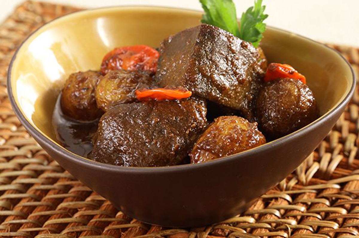 Malbi is a beef stewed with sweet soy sauce and spices. This meal usually be served during Eid al-Fitr or Palembang traditonal wedding. A portion of Malbi usually will be served with nasi minyak or oil rice, a dish of rice cooked with ghee oil and spices.