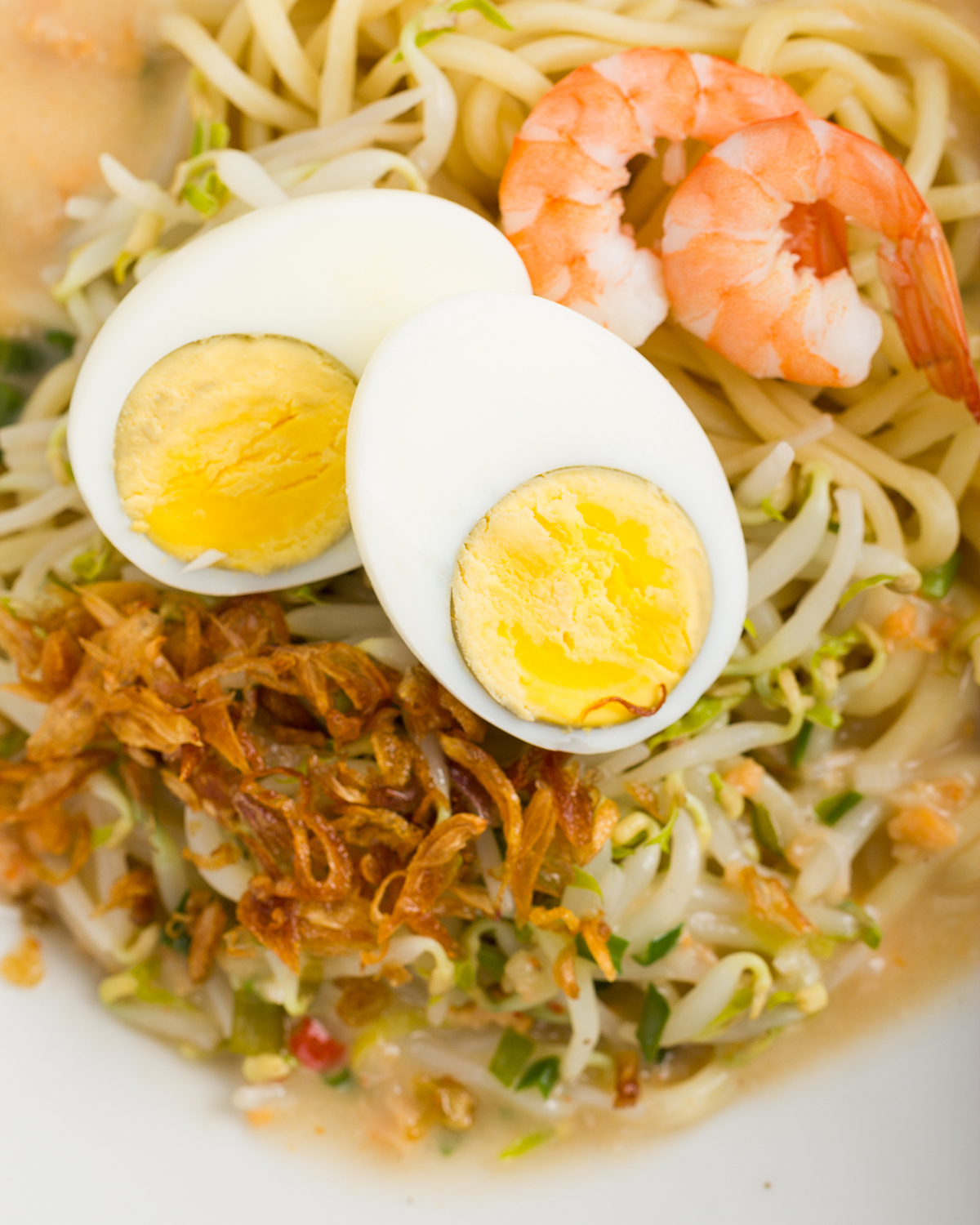 If you feel kind of bored with fish dishes, you may try to taste Mi Celor or Celor Noodle. This noodle is served with coconut milk soup and dried shrimp broth, as well as slices of boiled eggs, chopped celery, leek and fried onion.