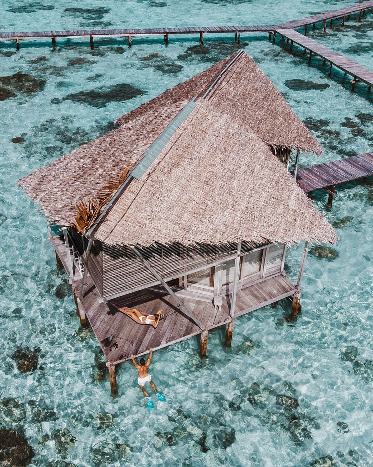 Known as Maldives Van Gorontalo, Pulo Cinta is a sublime tropical resort, situated in Gulf of Tomini, Gorontalo, Indonesia. The name itself came from the shape of the island that is heart-shaped if you see it from the aerial view, which is why it is called Pulo Cinta (Love Island). These resorts are built above the water surrounding the island. Therefore, you will need to go through white sands and salt water, and then get on the bridge, to get to your villas. It is a perfect place to visit for your summer vacation or honeymoon trip. You can take your sweet time for leisure or enjoy some activities like snorkeling and scuba diving!